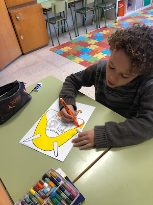 A LA CLASSE HEM APRÈS I CANTAT GLOSES I FET MÀSCARES. TAMBÉ HEM CONTAT EL CONTE DE LES BANYES D'EN CUCARELL.